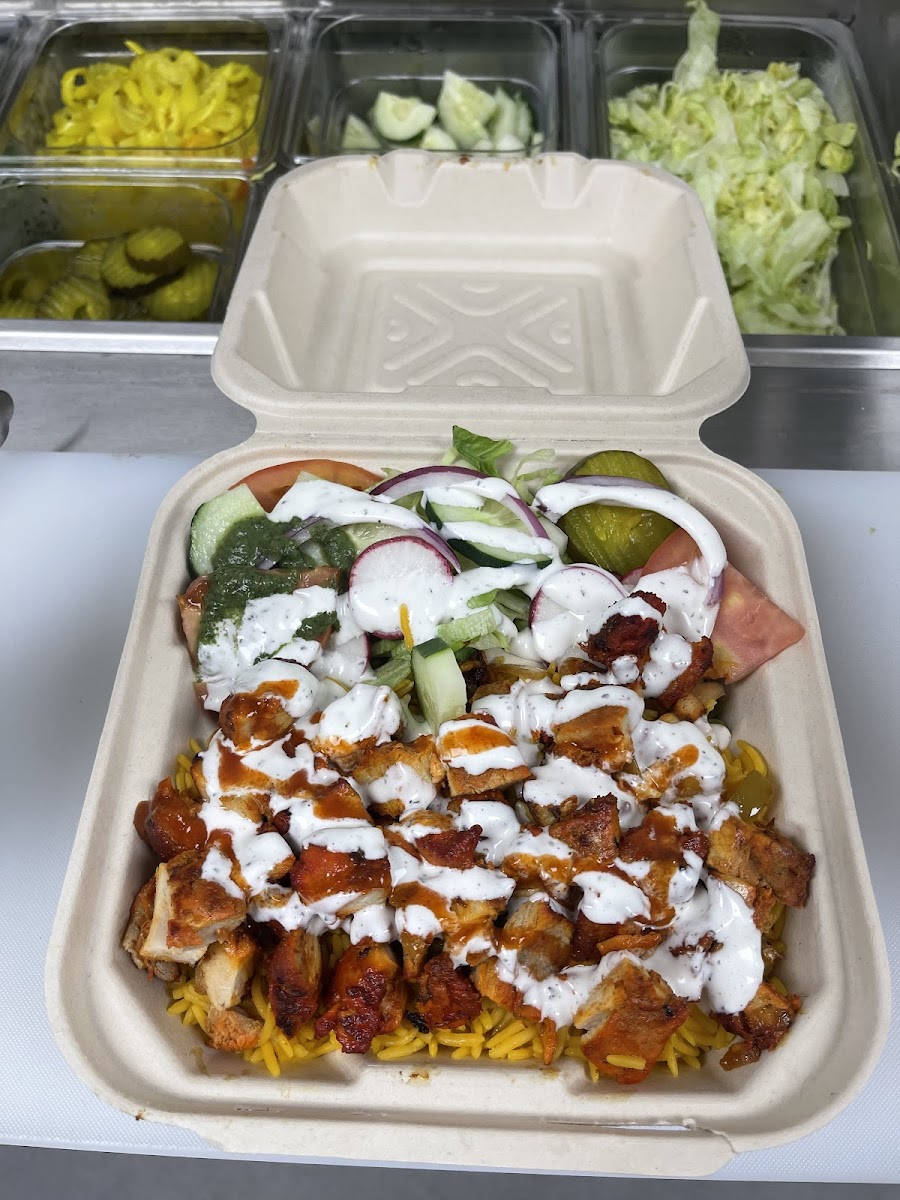 The BEST HALAL I’ve had so far in WISCONSIN! Even the customer service and hospitality were amazing and so genuine!! We got the combo platter halal and combo gyro and my gosh! The meat was tender and seasoned to perfection! I can’t forget about the saffron! You can taste an amazing level of it in every bite. Customer service was excellent, had a small conversation with the owner and he told me they’ve been opened for a year and I told him I traveled 3hrs away to taste his food because I’ve been craving it for so long! The owner did the most sweetest and generous thing, and gave me 2 mango drinks for my 2 daughters, the chicken nugget platter, the chicken strip platter and told us before we leave to come back up with our halal container so he can refill it up! I didn’t take the halal refill, because the 2 drinks, chicken nuggets and chicken strips platters was already too much food and so generous of him to do. I was in tears and loved how kind he was especially in the world the we live in right now. So thank you so much! I can’t express how your kindness touched my heart! I wish and pray that you receive everything you do in ten folds and many blessing to you and your business. Rate: 100/10.